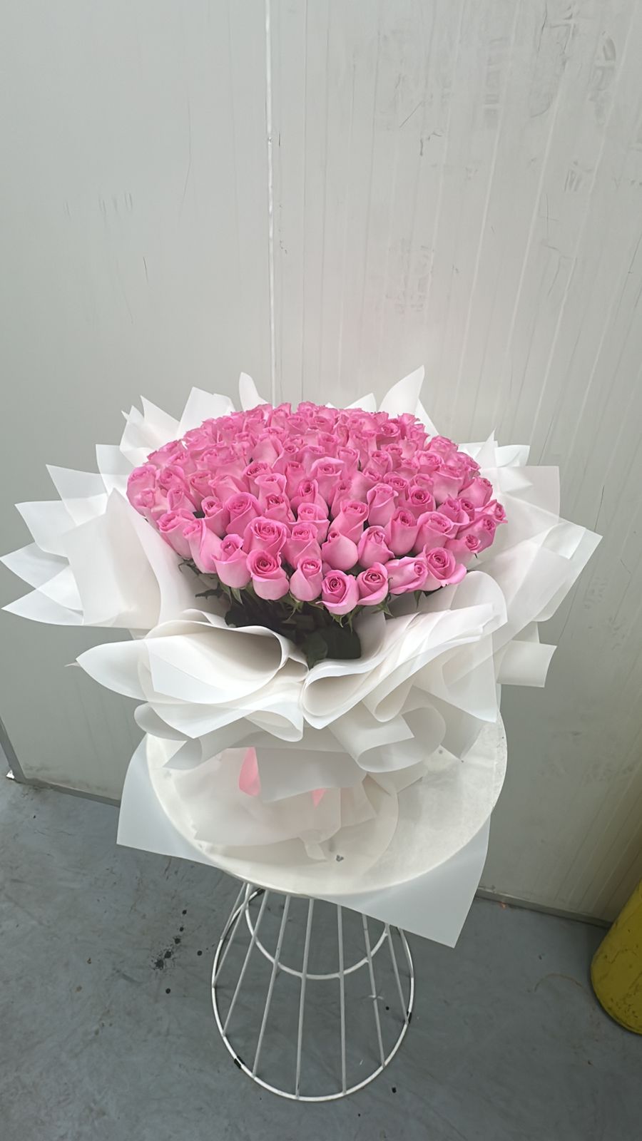 February 9, 2026100 Pink Roses With White Wrapping FLV-0322