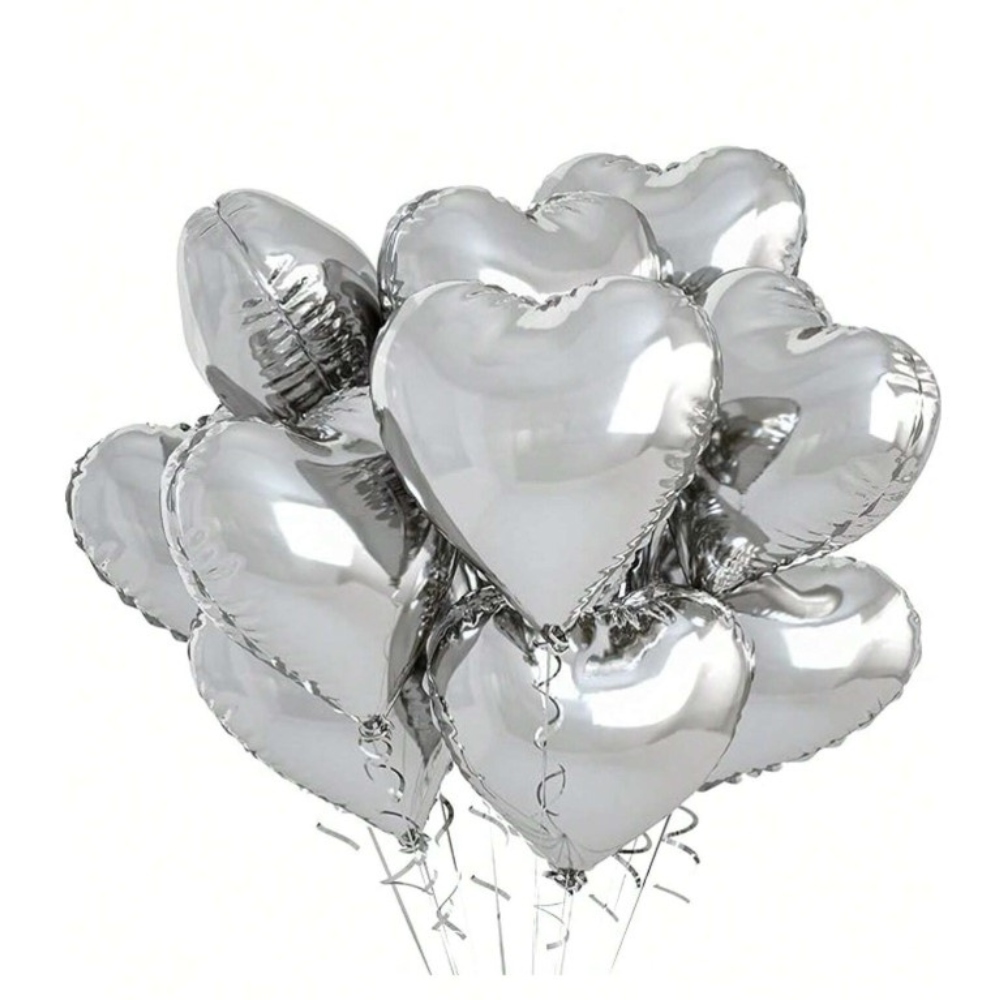18-Silver color Foil Heart Balloons
