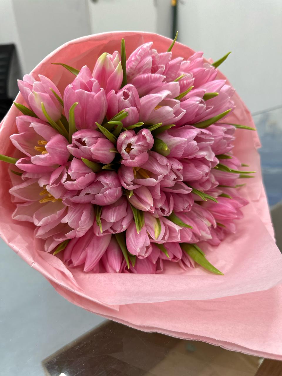 A delicate and elegant expression of love, grace, and admiration, this bouquet of 25\49\101 premium pink tulips is perfect for any special occasion. The soft pink hues symbolize affection, happiness, and admiration, making it an ideal gift for birthdays, anniversaries, baby showers, or a heartfelt gesture of appreciation. Their fresh beauty and gentle charm create a stunning floral arrangement that brings warmth and joy to every moment.