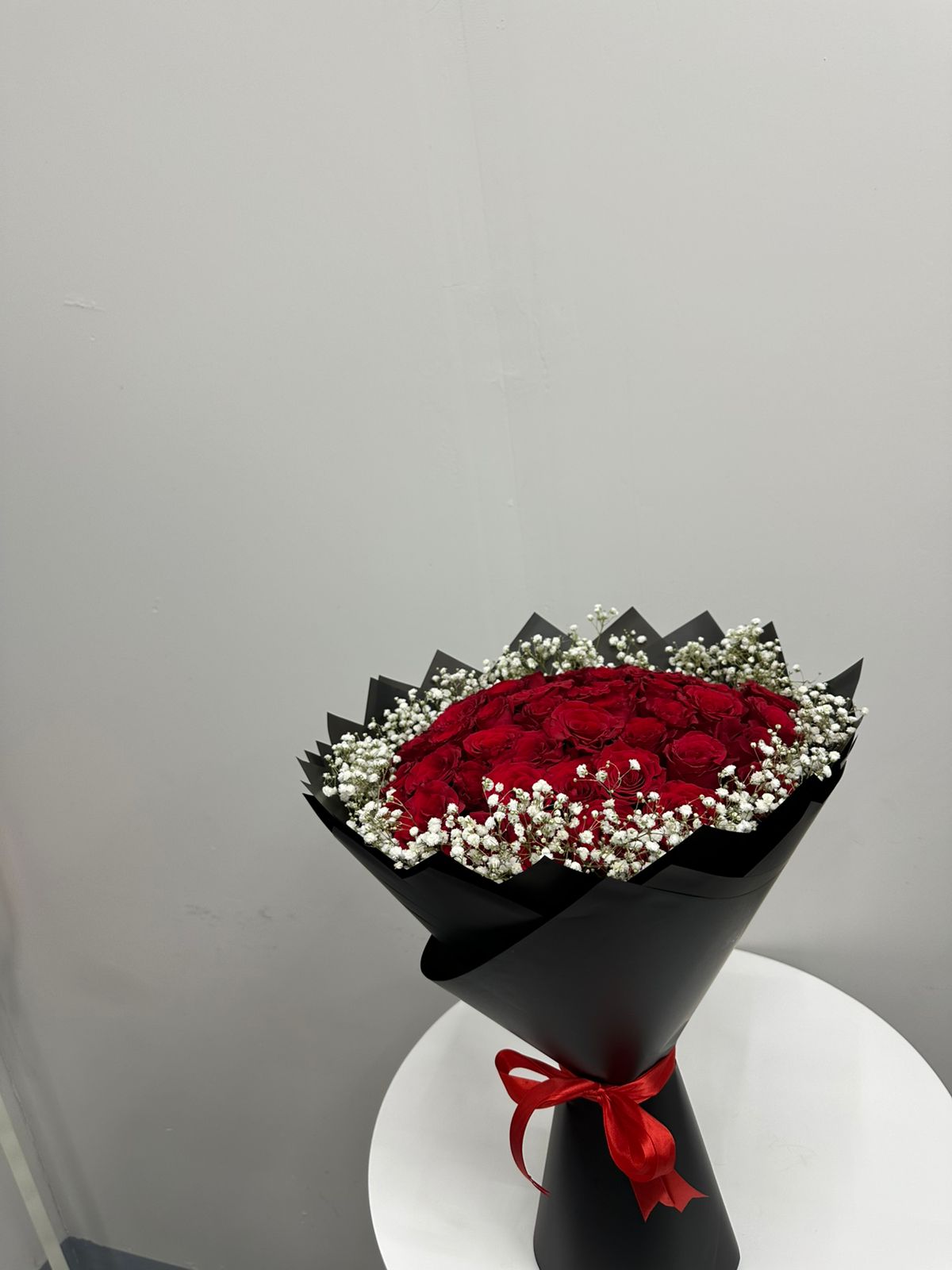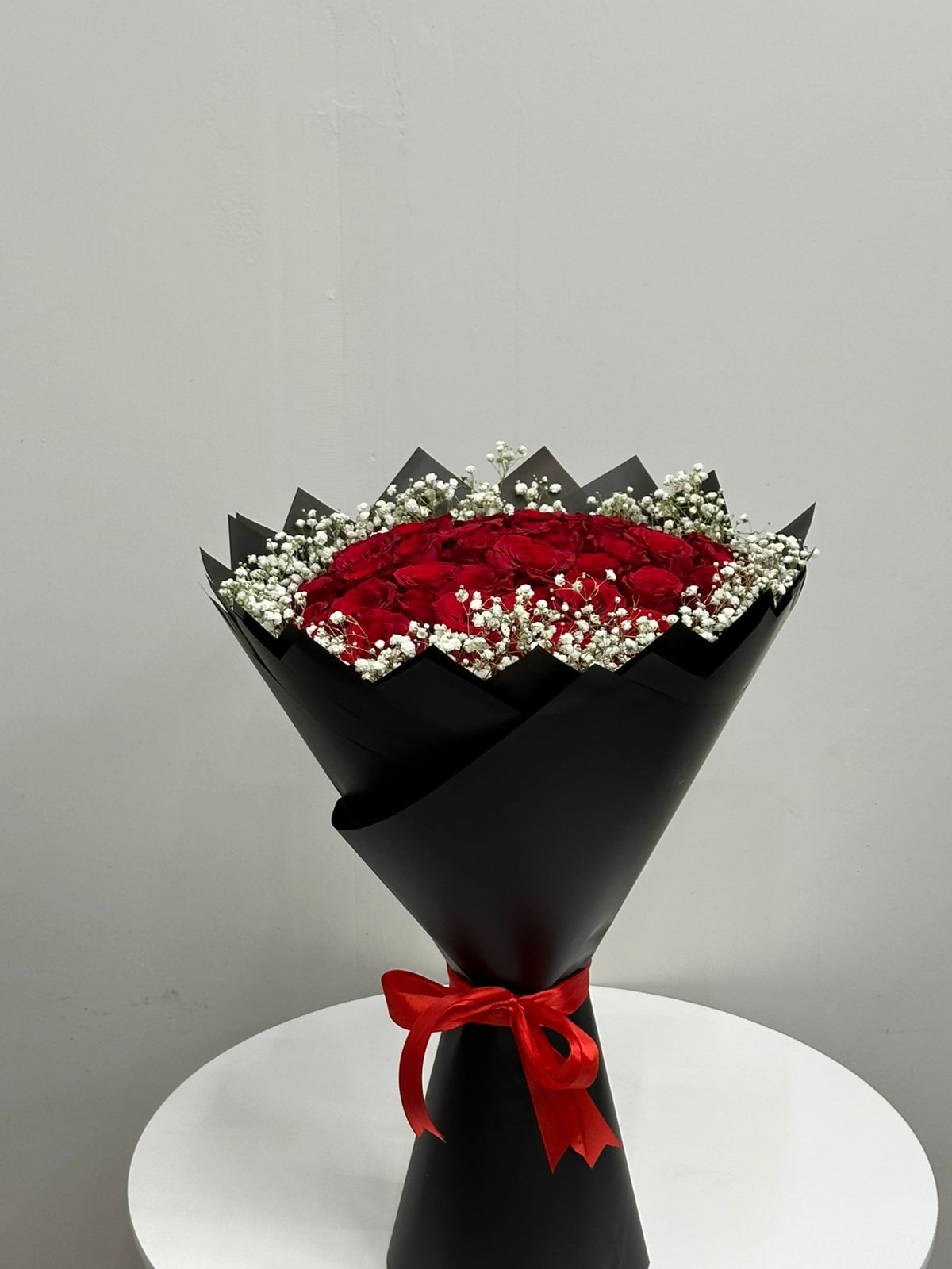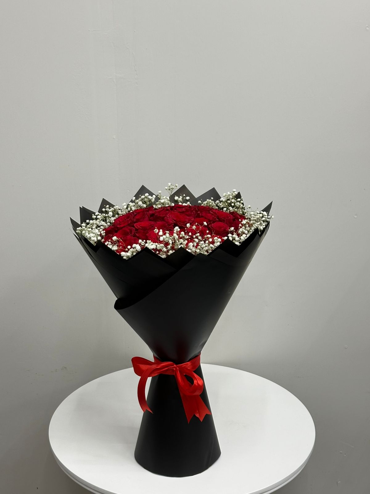 Celebrate love this Valentineโs Day with a breathtaking bouquet of rich roses, the ultimate symbol of romance and passion. This luxurious arrangement features a full, round display of fresh premium roses, carefully hand-crafted to create a bold and unforgettable impression.