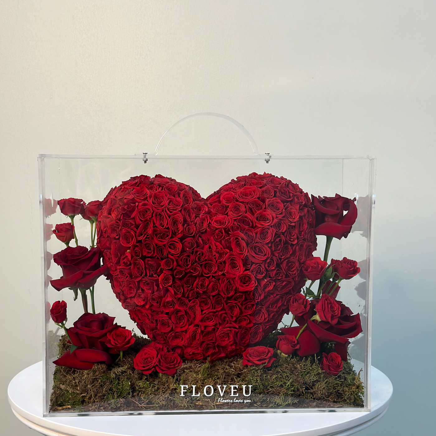 This captivating heart-shaped arrangement is crafted with fresh spray roses and elegantly displayed in a transparent acrylic bag. The delicate, vibrant roses are carefully arranged to form a stunning heart, showcasing their rich colors and soft petals. The acrylic bag enhances the beauty of the arrangement, offering a modern and chic presentation while preserving the freshness of the flowers. Perfect for adding a touch of love and sophistication to any space, this unique design is an exquisite blend of nature’s elegance and contemporary style.